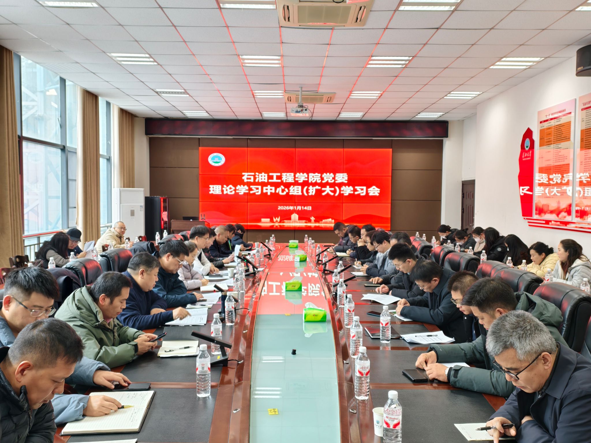 1月14日下午,石油工程学院党委理论学习中心组在石油科技大楼B113会议室开展集中学习扩大会,中心组成员、教工党支部书记、系(中心)主任、研究所所长和教学团队负责人参加。会议由党委书记张伟主持。