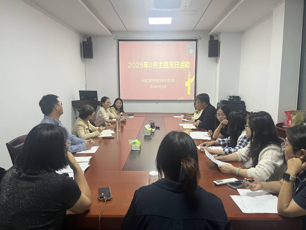 (通讯员 韩清越 黄姿轩)为深入学习贯彻党的二十大精神和学校新学期工作部署要求,推动党建与业务工作深度融合,石油工程学院机关教工党支部于2025年9月25日在石油工程学院行政会议室召开九月主题党日活动。本次活动通过“线上+线下”相结合的方式开展。会议由党支部书记杨小玉同志主持。