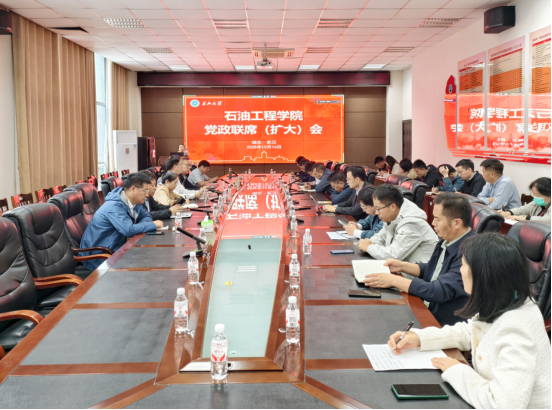 2025年10月16日下午,石油工程学院在石油科技大楼B113会议室召开党政联席扩大会。会议由院长宇波主持,院领导班子成员、教工党支部书记、各系(中心)主任、研究所所长、教学团队负责人及行政各科室负责人参加。