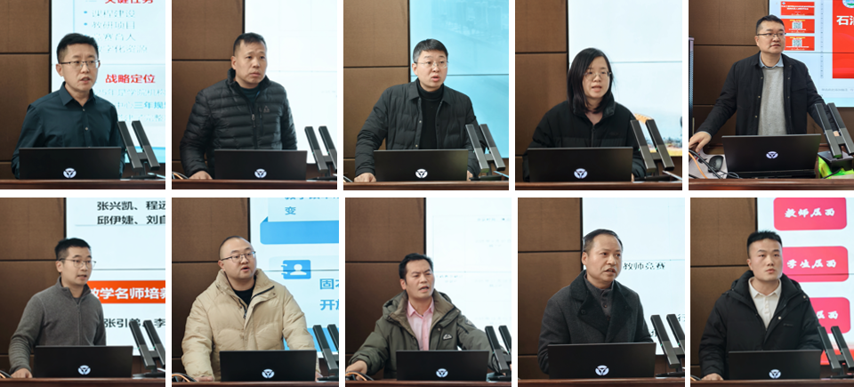 会议第三阶段,教学研究中心主任及各教学团队负责人进行述职汇报。9个教学团队负责人重点围绕2025年度揭榜挂帅项目目标,汇报了教学成果、教学竞赛、教材建设、教研项目、教学平台等项目的阶段性进展与后续实施路径。教学研究中心主任魏凯在总结汇报中心年度工作成效基础上,重点分析了目前存在的挑战和下一步优化措施,2026年度将以揭榜挂帅项目为抓手,强化过程管理,确保目标任务可量化、可考核、可验收,切实将教育教学改革举措落地见效。
