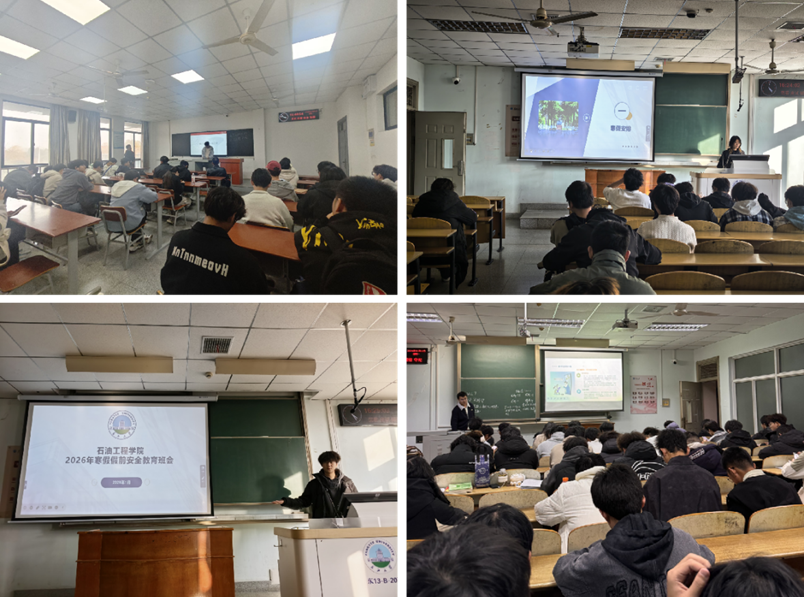 (通讯员 张晓敏)寒假临近,为强化学生安全防范意识、筑牢假期安全屏障,石油工程学院于2026年1月10日起组织各班级召开寒假前安全教育主题班会。