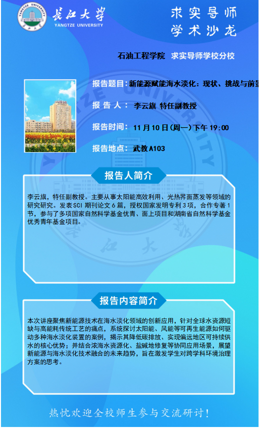 下一条:石油工程学院2025-2026学年“求实导师学术沙龙”讲座信息(11月8日)